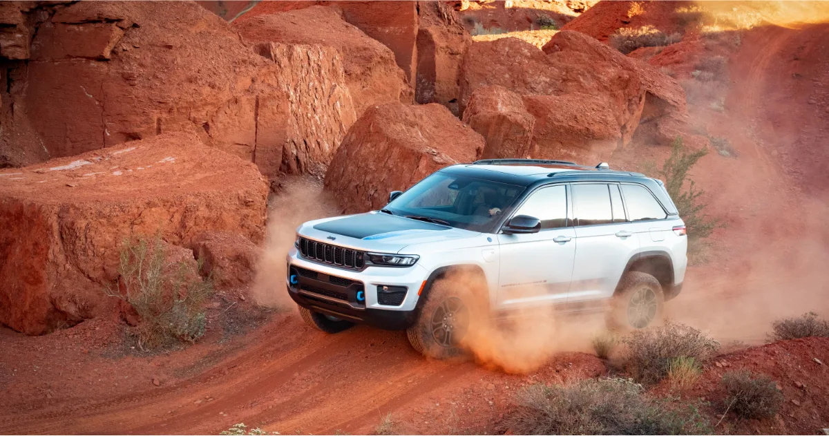 The Jeep Grand Cherokee 4xe elevates the model’s award-winning formula by integrating a powerful and efficient plug-in hybrid system. This powertrain delivers 375 horsepower and 470 lb-ft of torque, enabling impressive acceleration, an all-electric range for local driving, and no-compromise Jeep capability.