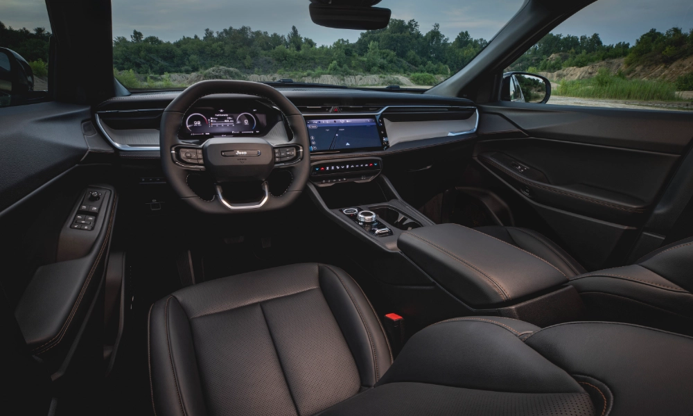 Step inside, and you’ll discover a cabin that has been completely transformed into a sanctuary of comfort, space, and technology. The cockpit is significantly larger, offering more headroom, legroom, and interior storage than any previous Cherokee. High-quality, elevated materials are utilized throughout the interior, from the soft-touch dashboard to the intricately designed door panels.